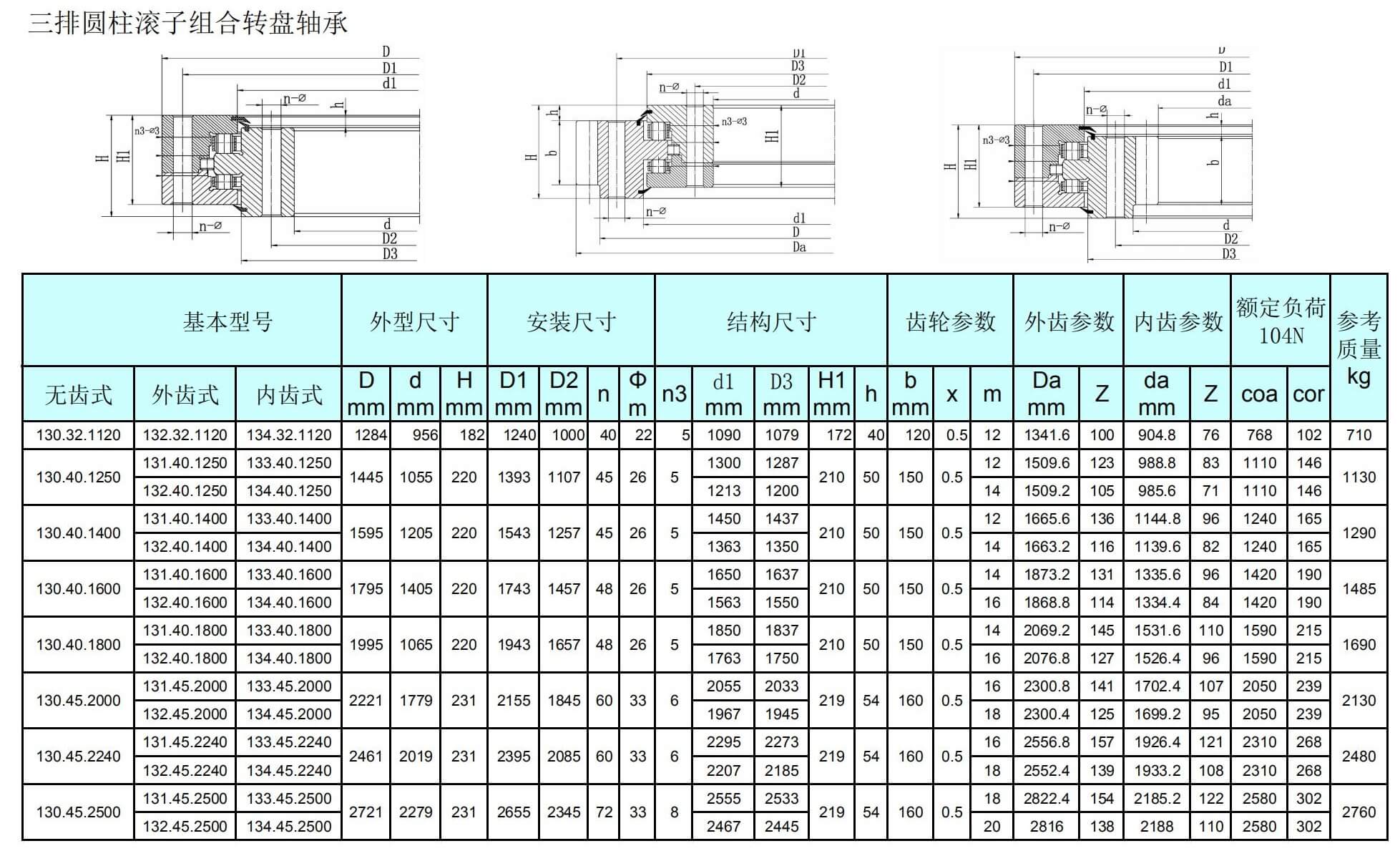 三排圓柱滾子組合轉(zhuǎn)盤(pán)軸承外齒式