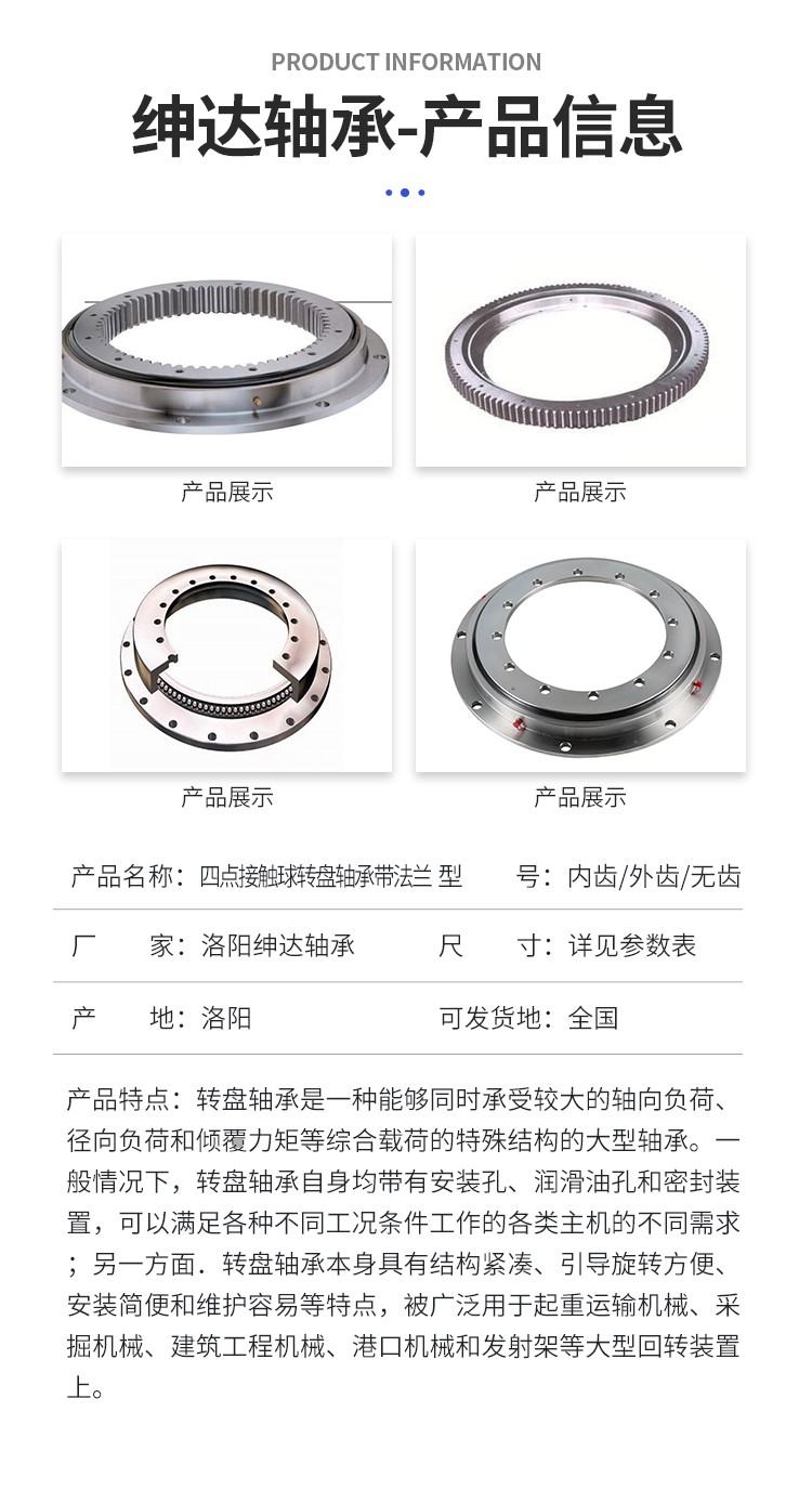 四點接觸球轉(zhuǎn)盤軸承帶內(nèi)外法蘭式