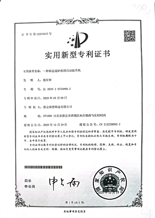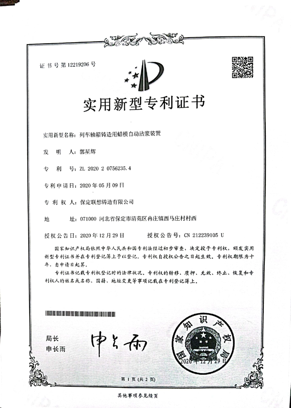 Patent certificate